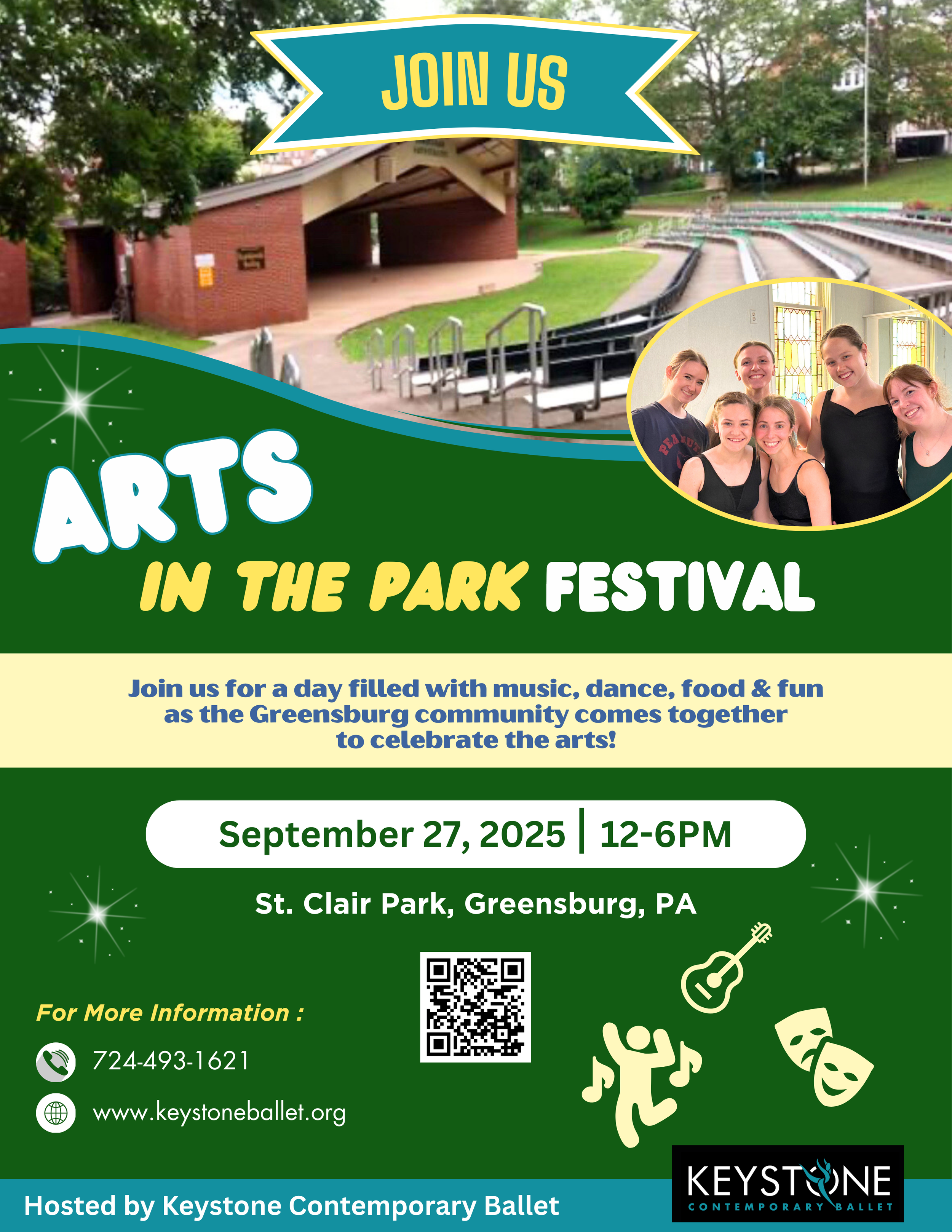 Join us at St. Clair Park in Greensburg as we celebrate the arts community!